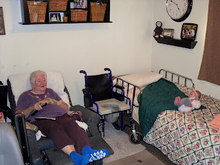 So it's official GG is all settled in and feels right at home. We brought over all of her things from her house and put them here in this room for her so she would feel most comfortable. She was so cute when she saw the room with all of her things in it she got so excited, she said she loves it. I'm so glad! And Koli is in heaven, seriously this girl LOVES GG. If she's crying all I got to do is walk in GG's room and she instantly perks up. She is always giving Grandma the biggest grins ever. They are best buds these two. Like two pees in a pod.
